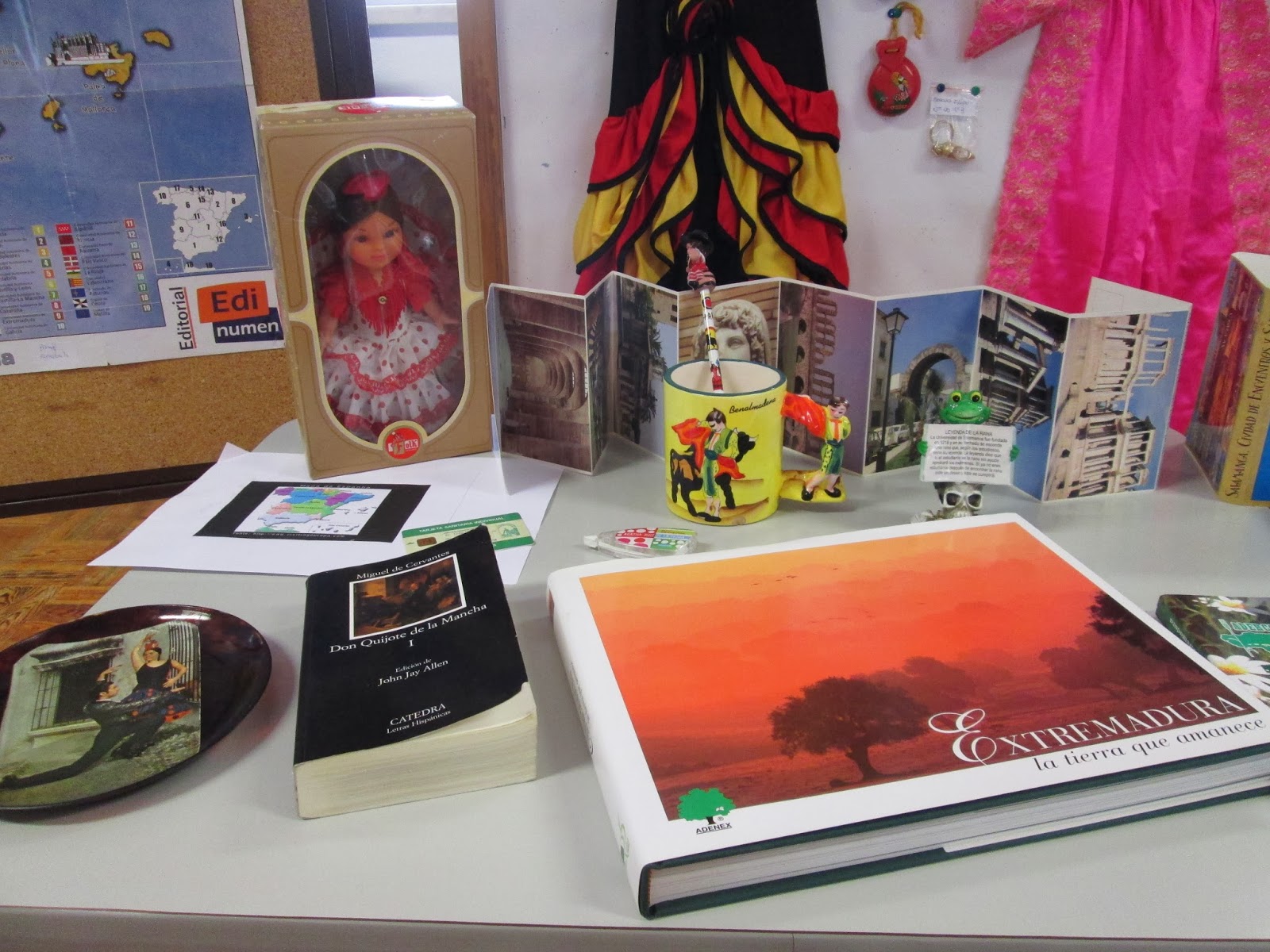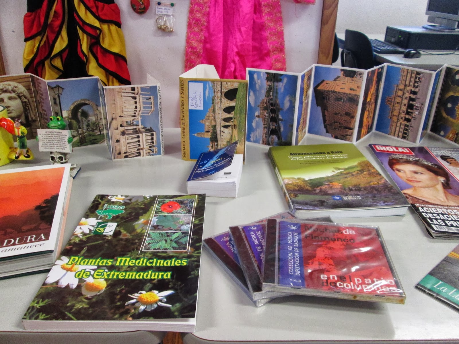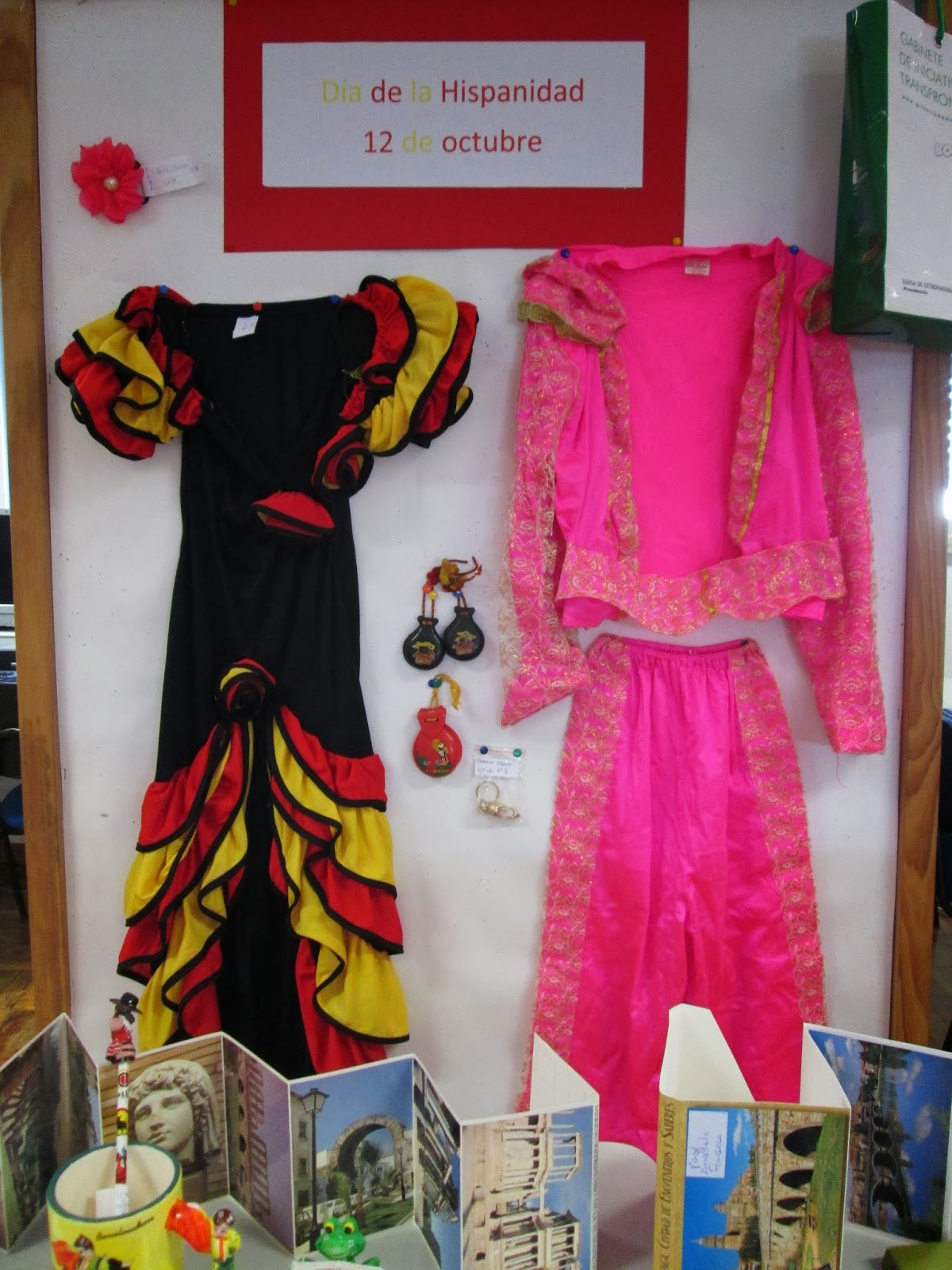 Para comemorar este dia, a docente de espanhol, Anabela Fonseca, realizou com os seua alunos uma pequena exposição de objetos ligados a Espanha. Apareceu um pouco de tudo... desde Sevilhanas até à revista "HOLA".